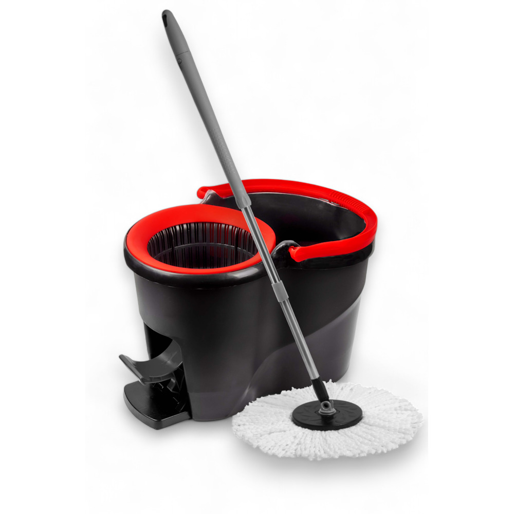 Balde de fácil centrifugação e secagem por pedal. Espremedor spin mop 360º. Diga adeus ao escorrer manual. O pedal inovador permite um fácil escoamento e um controlo eficaz da humidade.