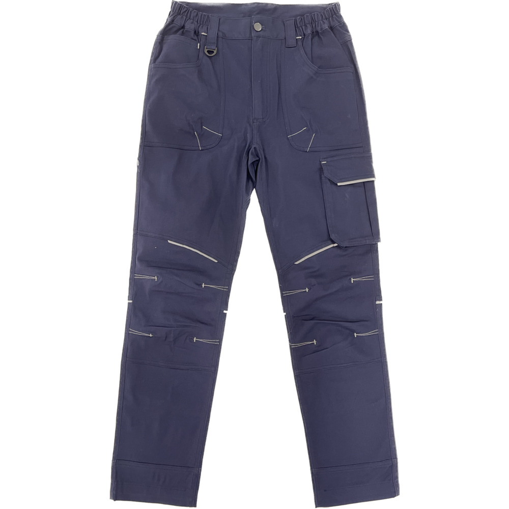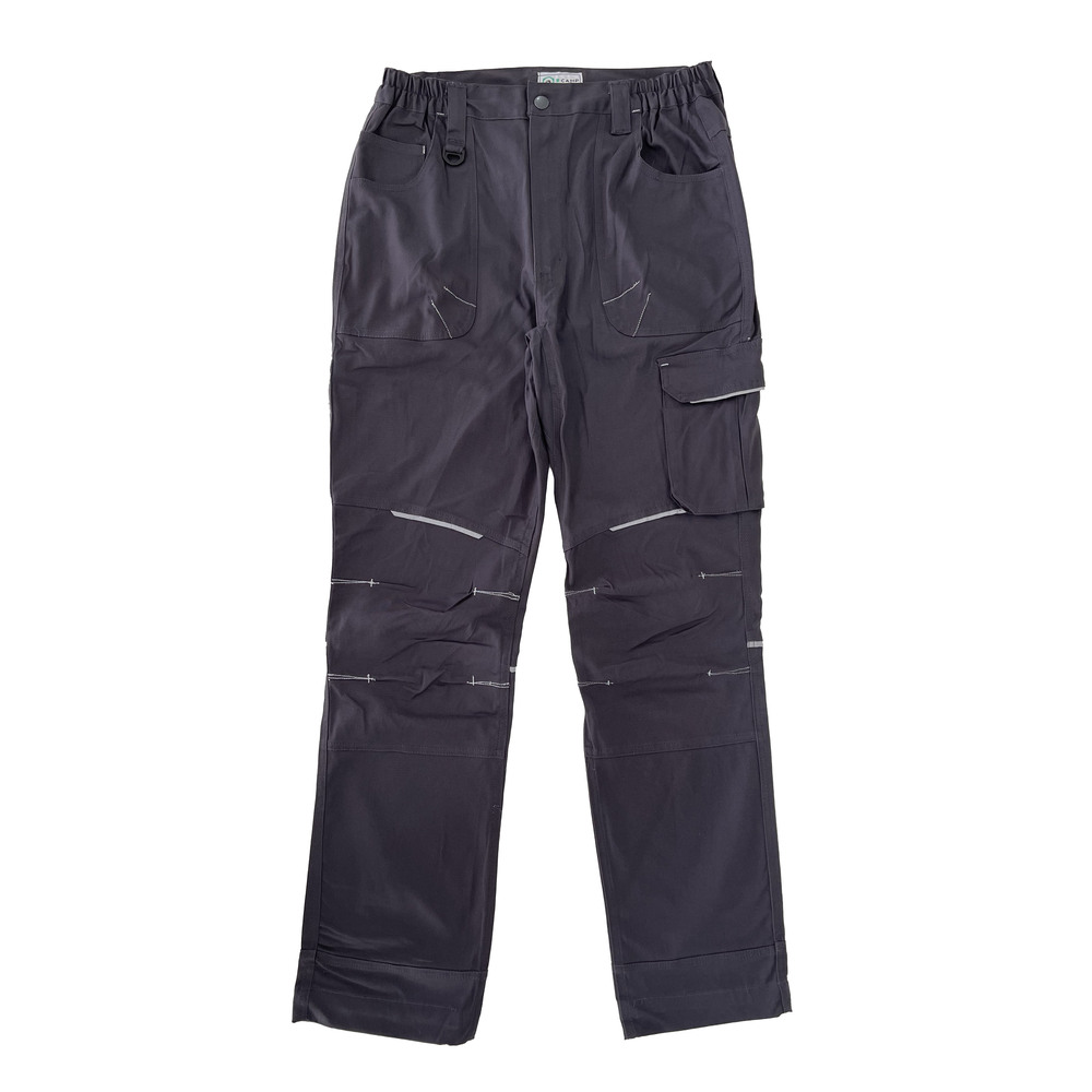 Costura dupla em toda a calça e tripla na parte interior das pernas e gancho.