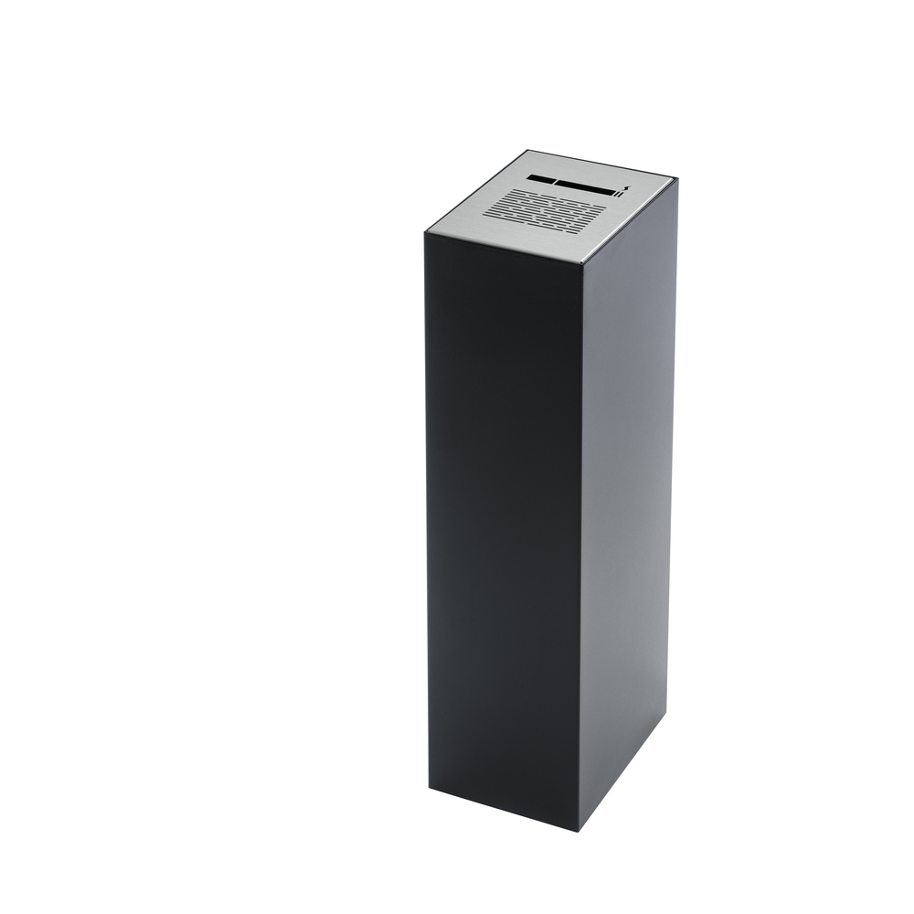 Cinzeiro retangular em chapa de aço com pintura epoxy a qualquer cor (Verificar paleta de cores), e tampa em aço inox.
