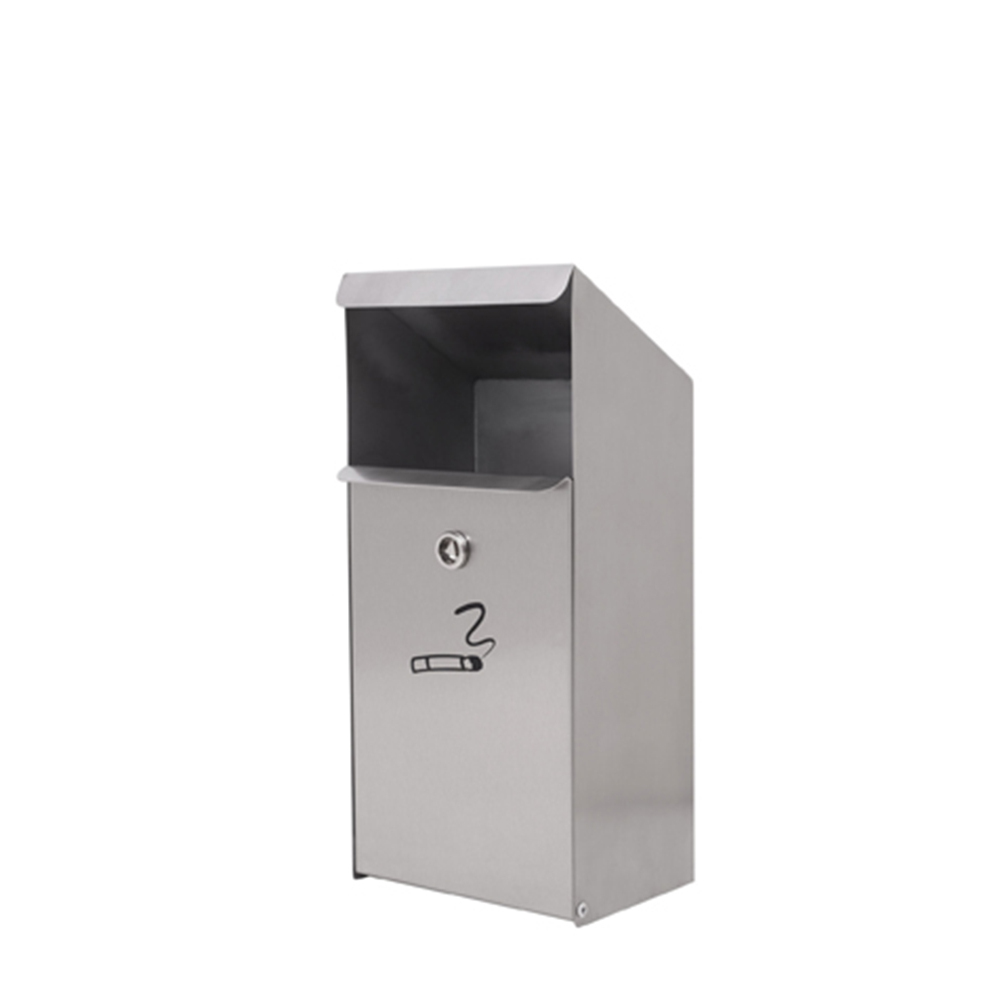 Cinzeiro de parede, totalmente em aço inox escovado.