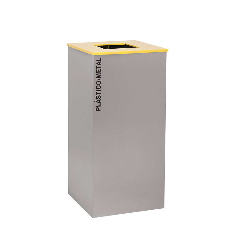 Ecoponto individual de grande capacidade, com tampa selectiva para reciclagem, totalmente construído em aço inox escovado.
