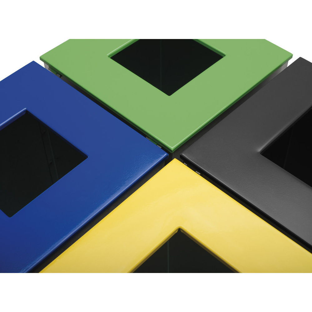 Ecoponto individual com tampa selectiva para reciclagem, construído em chapa de aço com pintura epoxy a qualquer cor (Verificar paleta de cores).