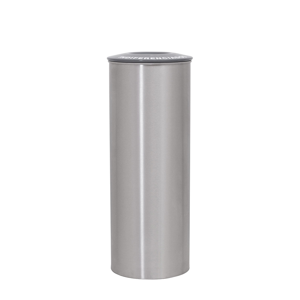Ecoponto individual com tampa selectiva para reciclagem, totalmente construído em aço inox escovado.