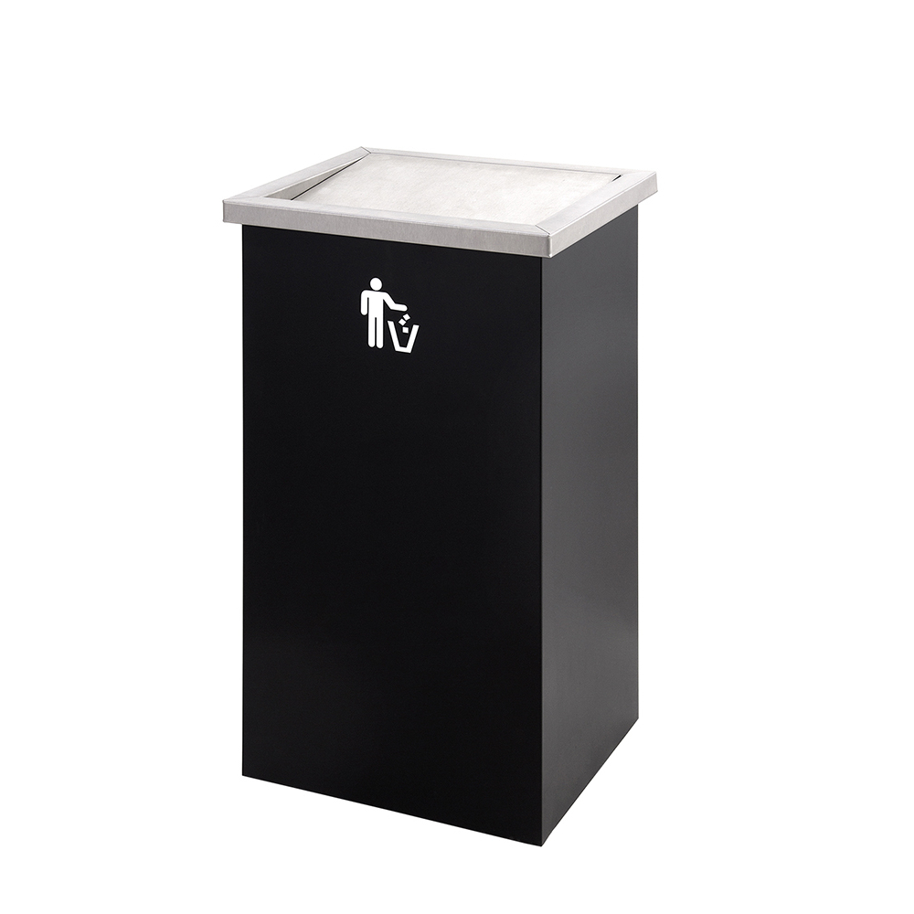Papeleira em chapa de aço com pintura epoxy a qualquer cor, com tampa basculante em inox escovado (Verificar paleta de cores).