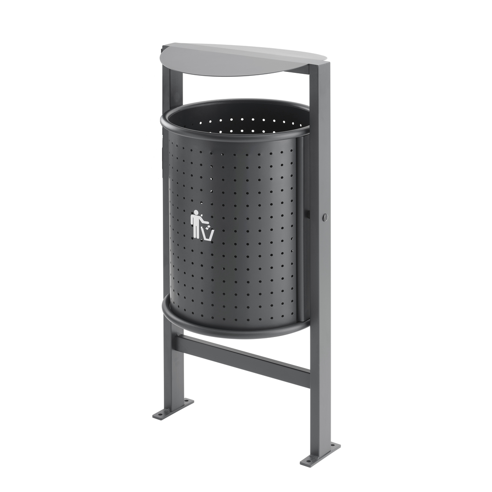 Papeleira de jardim com chapéu em chapa de aço perfurada com zincagem e pintura epoxy a qualquer cor (Verificar paleta de cores).